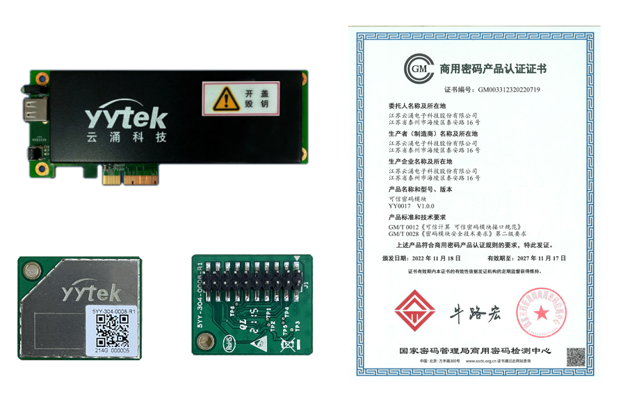 YY0017可信密碼模塊基于可信計(jì)算核心思想和基本架構(gòu),依據(jù)等級(jí)保護(hù)2.0要求,采用國(guó)芯安全芯片,是可信計(jì)算密碼支撐平臺(tái)必備的關(guān)鍵基礎(chǔ)部件,作為硬件和固件的集合,可以為整個(gè)可信計(jì)算提供獨(dú)立的密碼算法支撐,支持SM1/ SM2/SM3/SM4等國(guó)密算法,符合國(guó)密認(rèn)證標(biāo)準(zhǔn),已取得GM/T 0012可信密碼模塊證書(shū)。
