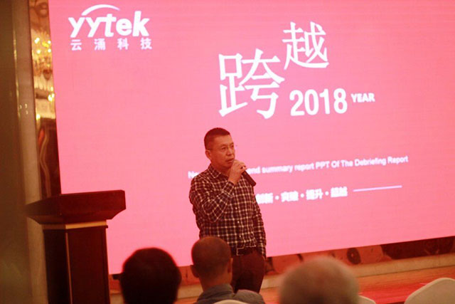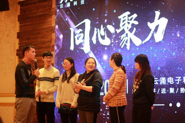 下午四點(diǎn)公司在泰州鵬欣大酒店隆重舉行了2019年云涌科技年會,年會主題為"同心聚力,共創(chuàng)未來"。公司董事長高南在會議中總結(jié)了過去一年的輝煌成績,同時謀劃了未來云涌科技的技術(shù)及產(chǎn)品方向。
