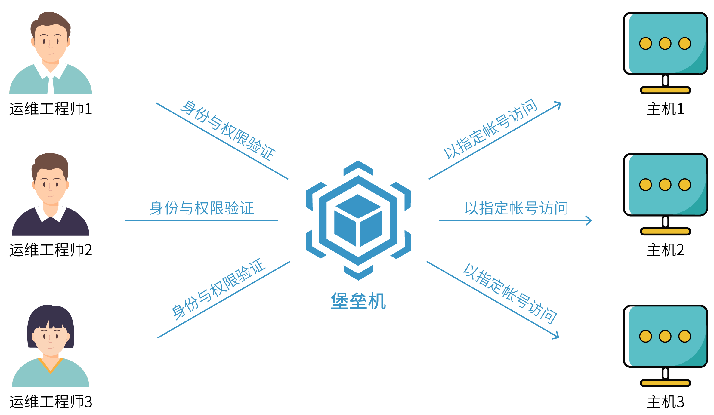 和網(wǎng)關(guān)型堡壘機不同的是,雖然運維審計型堡壘機的應(yīng)用場景及部署位置更為復(fù)雜,但是其本身不會消耗太大流量,它通過對訪問和運維人員進行授權(quán)和控制,同時對訪問和操作行為進行審計,更加規(guī)范了運維人員的操作行為,保障內(nèi)部資源的安全。