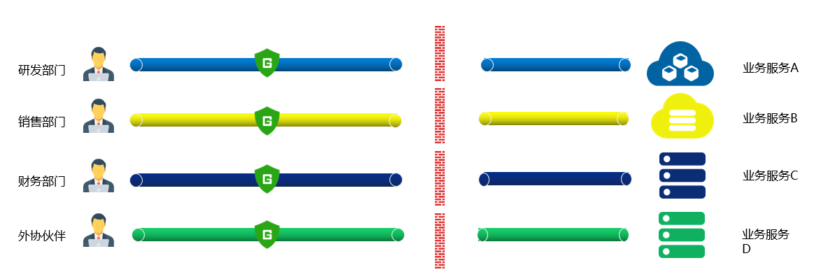 1、本公司員工與外部合作單位的員工需要組網(wǎng)遠(yuǎn)程協(xié)作,出于安全考慮又不能讓外部員工遠(yuǎn)程接入本公司的內(nèi)部網(wǎng)絡(luò),如何能保證協(xié)作業(yè)務(wù)的微邊界隔離訪問?