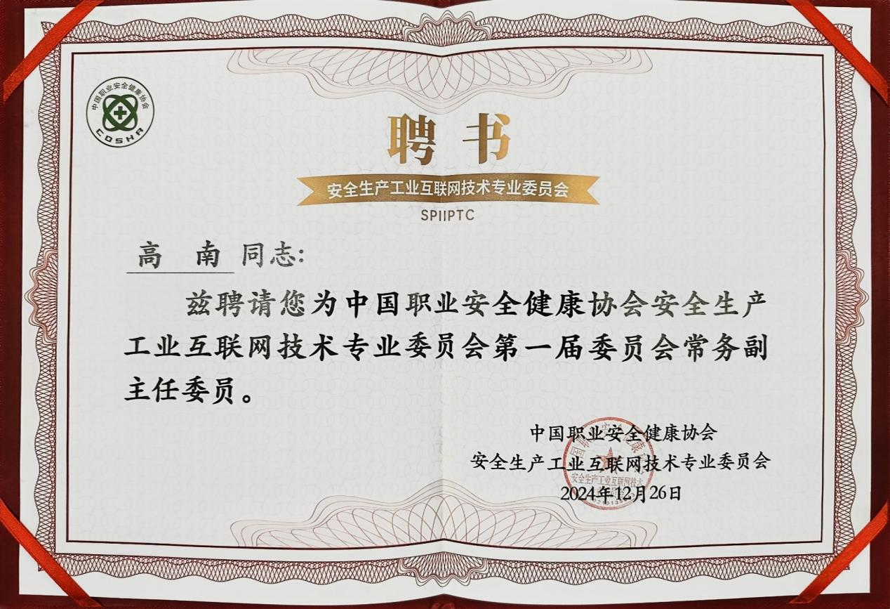 在此次盛會上,云涌科技憑借其卓越的技術實力和行業(yè)影響力,榮膺中國職業(yè)安全健康協(xié)會安全生產工業(yè)互聯(lián)網技術專業(yè)委員會常務副主任單位,董事長高南也被授予第一屆委員會常務副主任委員殊榮,這不僅是對云涌在安全生產工業(yè)互聯(lián)網領域深耕成果的高度認可,更是對我們今后工作賦予的全新責任與使命。