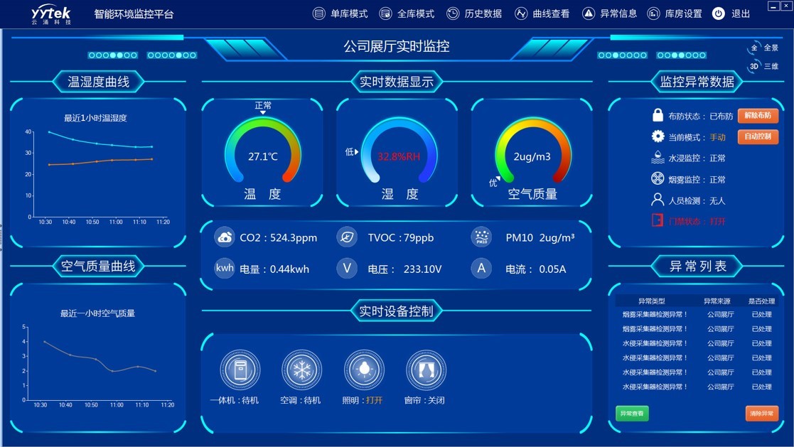 整個(gè)檔案館庫(kù)房通過接入云涌科技智慧環(huán)控系統(tǒng),采集所有檔案室內(nèi)的溫度、濕度、漏水、人員侵入等數(shù)據(jù),以便更好地通過自動(dòng)或手動(dòng)模式控制空調(diào)、除濕加濕凈化一體機(jī)、電動(dòng)窗簾、燈光等智能設(shè)備,從而達(dá)到調(diào)節(jié)溫濕度及空氣凈化的目的;除此之外,智慧庫(kù)房還通過接入視頻監(jiān)控、門禁,實(shí)時(shí)掌握庫(kù)房人員進(jìn)出情況,保證庫(kù)房?jī)?nèi)資料安全。