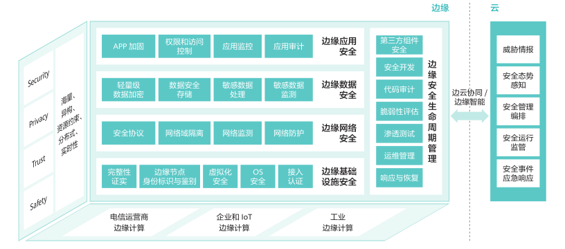 邊緣安全是邊緣計(jì)算的重要保障。邊緣安全涉及跨越云計(jì)算和邊緣計(jì)算縱深的安全防護(hù)體系,只有增強(qiáng)邊緣基礎(chǔ)設(shè)施、網(wǎng)絡(luò)、應(yīng)用、數(shù)據(jù)識(shí)別和抵抗各種安全威脅的能力,才能為邊緣計(jì)算產(chǎn)業(yè)的發(fā)展構(gòu)建安全可信環(huán)境。邊緣安全的核心價(jià)值體現(xiàn)在可以提供可信的基礎(chǔ)設(shè)施:主要包括計(jì)算、網(wǎng)絡(luò)、存儲(chǔ)類(lèi)的物理資源和虛擬資源。基礎(chǔ)設(shè)施是包含路徑、數(shù)據(jù)交互和處理模型的平臺(tái)面,可以應(yīng)對(duì)鏡像篡改、DDoS 攻擊、非授權(quán)通信訪問(wèn)、端口入侵等安全威脅。