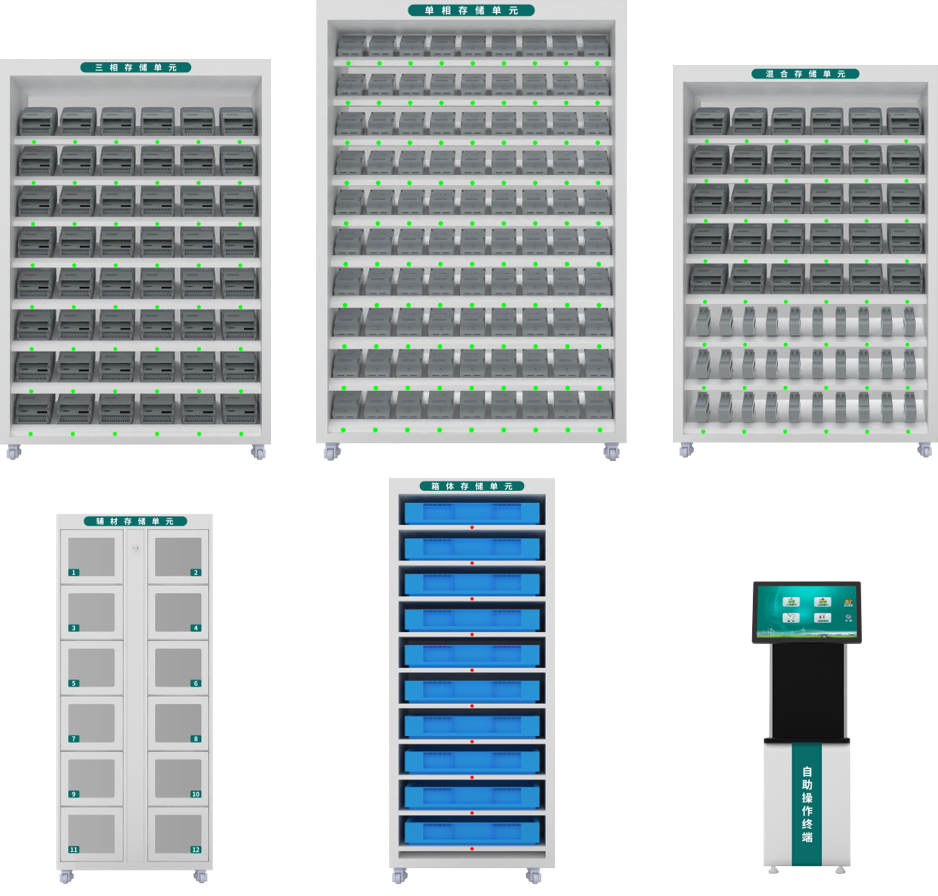 在設(shè)備方面,可提供單相存儲(chǔ)單位、輔材存儲(chǔ)單元、混合存儲(chǔ)單元、三相存儲(chǔ)單元以及箱表存儲(chǔ)單元等,根據(jù)庫(kù)房實(shí)際情況按需組合,存儲(chǔ)單元的多樣性,極大地滿(mǎn)足了現(xiàn)場(chǎng)空間的使用需求。而且結(jié)合智能操作終端的使用,一線業(yè)務(wù)人員在領(lǐng)用、存儲(chǔ)計(jì)量資產(chǎn)時(shí),只需在終端上點(diǎn)擊工單,相應(yīng)周轉(zhuǎn)柜儲(chǔ)位便會(huì)自動(dòng)點(diǎn)亮,并伴隨語(yǔ)音播報(bào),快速引導(dǎo)人員完成相關(guān)業(yè)務(wù)操作,極大提高了一線業(yè)務(wù)人員的工作效率。